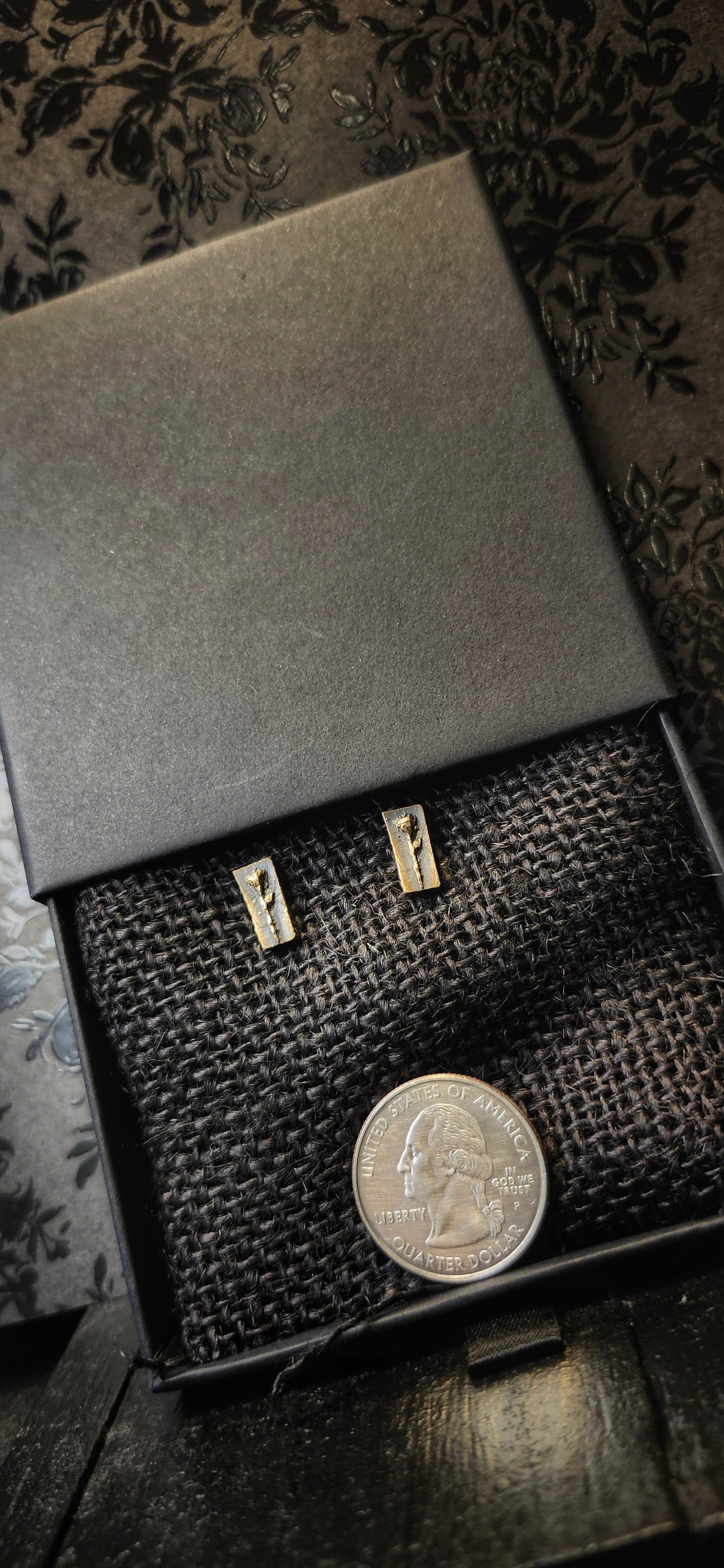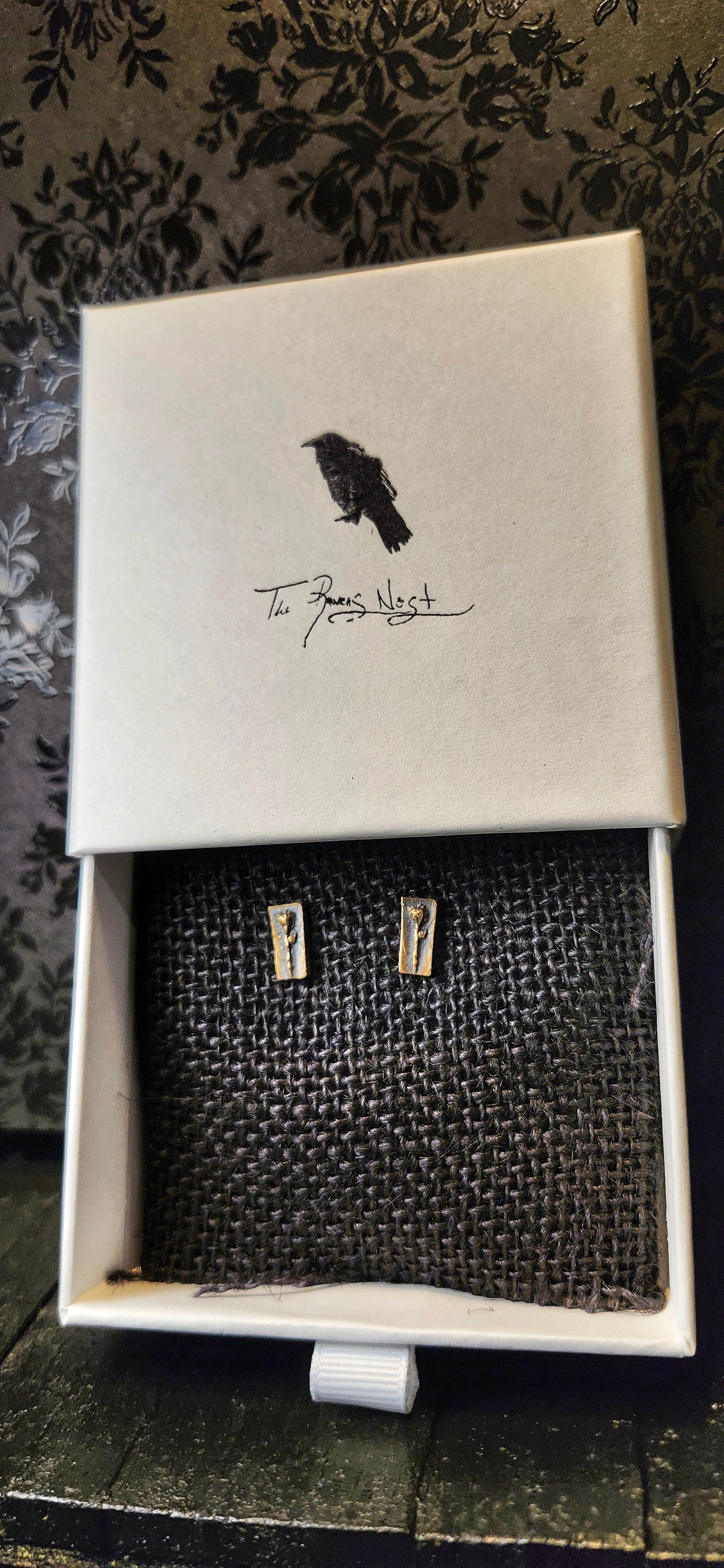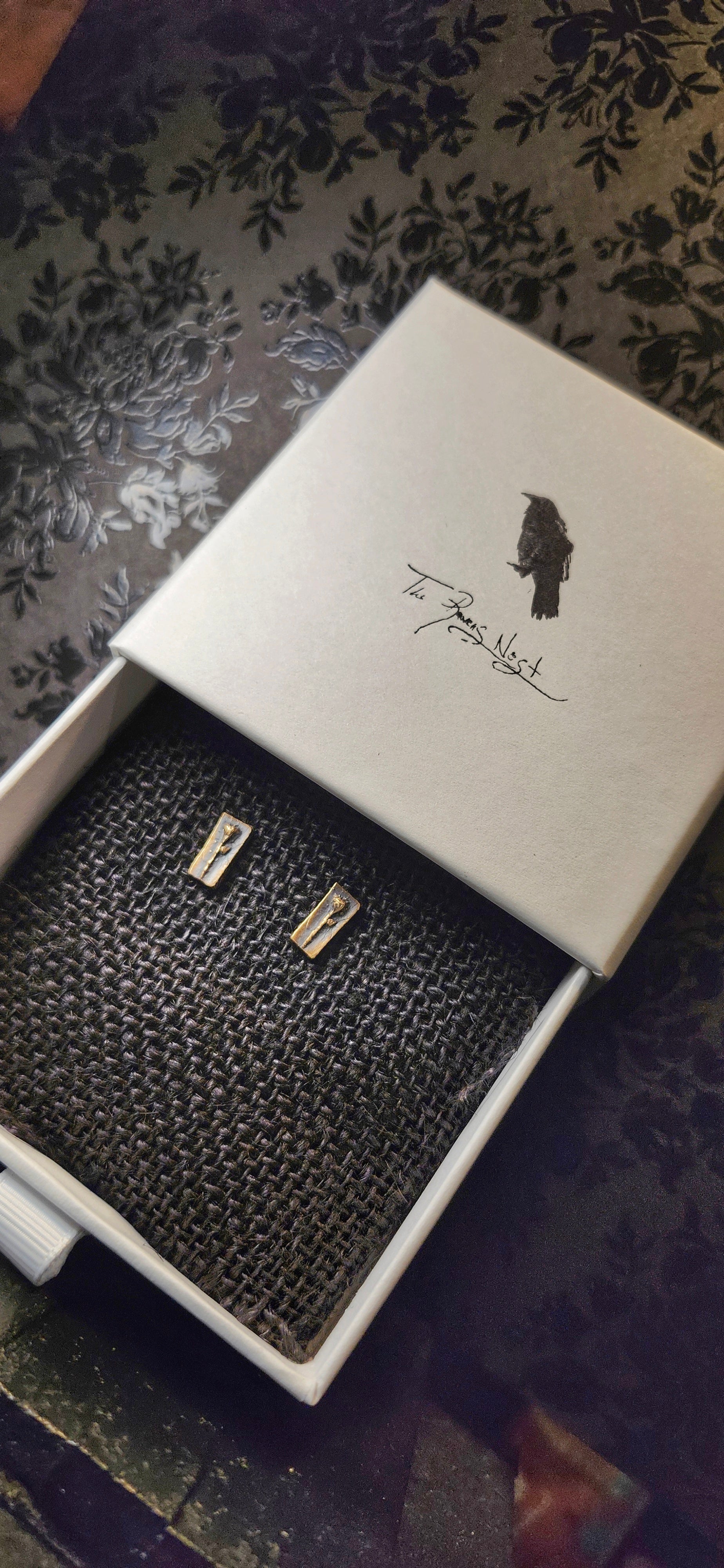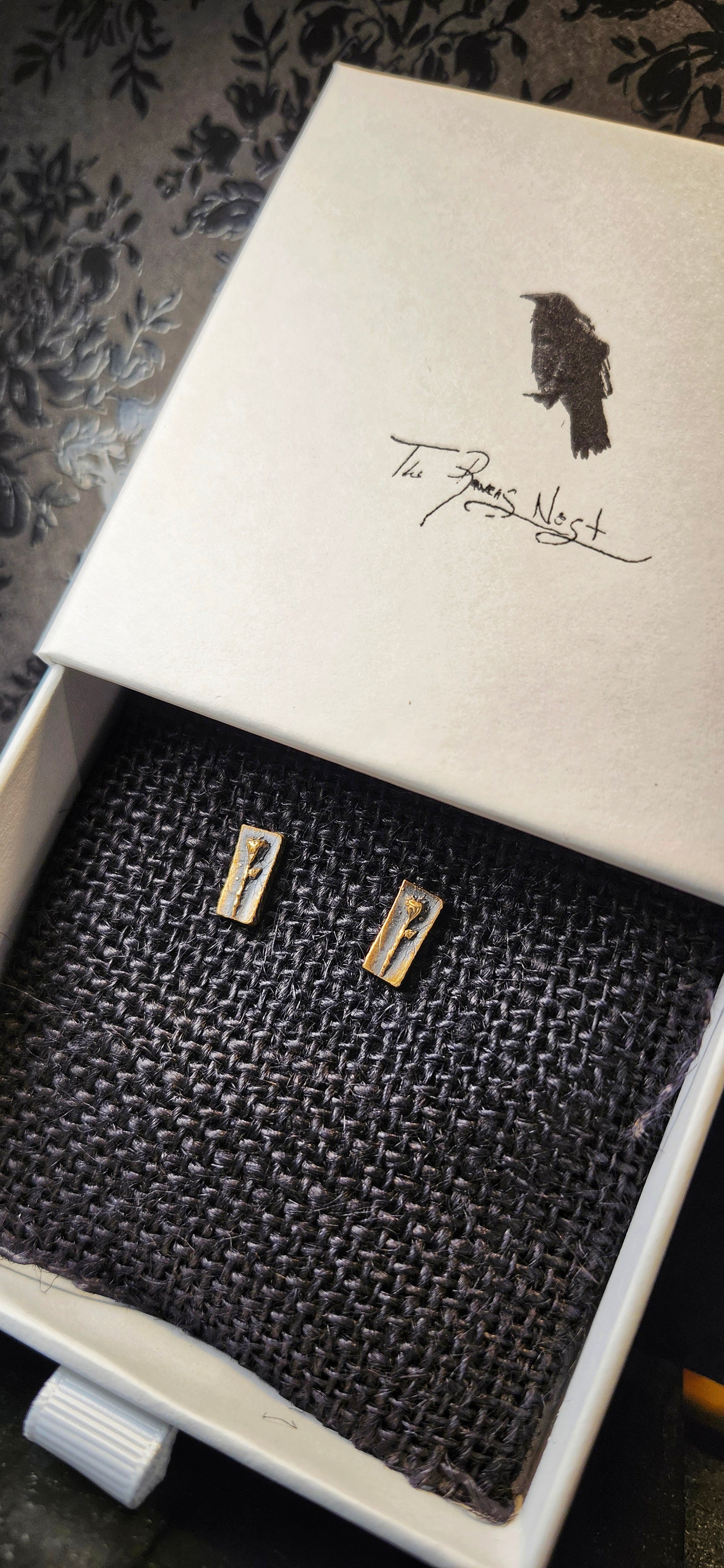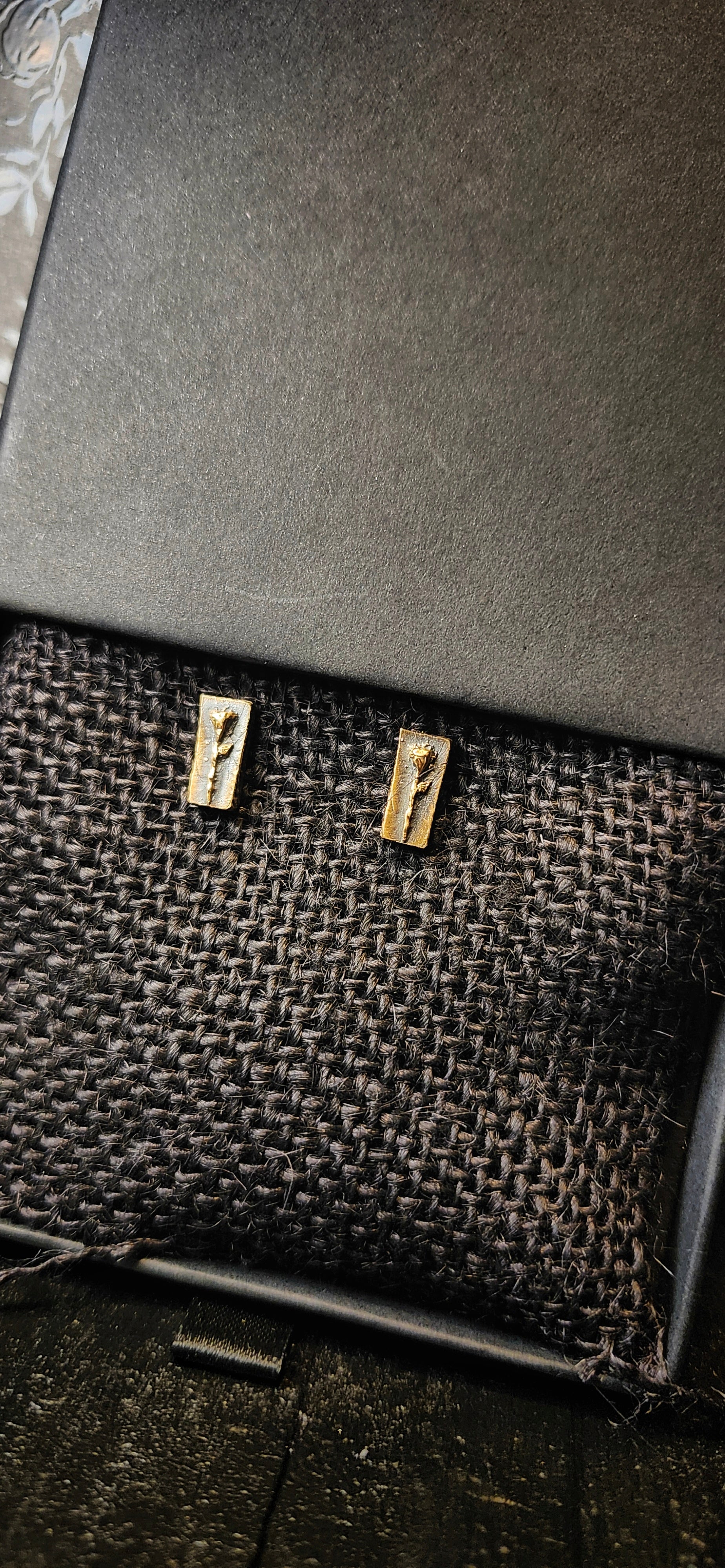 Adorn your ears with a touch of nature's charm with these small rectangular stud earrings. Each earring features a beautifully hand-carved flower, giving it a unique, artisanal feel. The slightly rustic, "roughly carved" detail adds a whimsical and organic touch, making each pair a work of art.